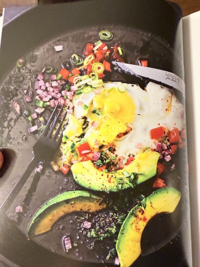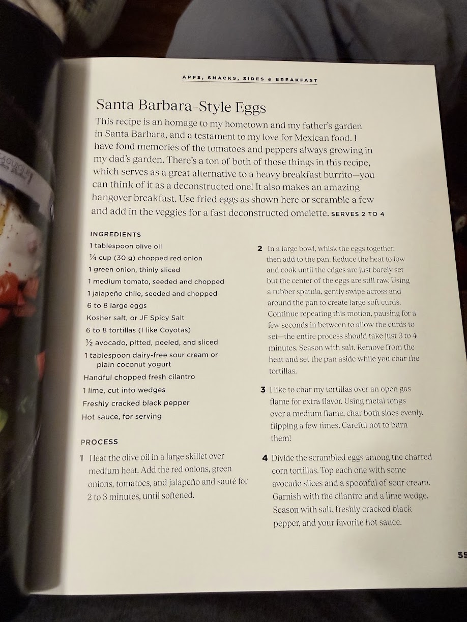 If you want a clean eating style, try this recipe from a new cookbook we got featuring “Santa Barbara Style Eggs.”