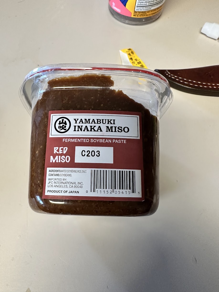 - 4 Tbsp miso (about 1 Tbsp per cup of dashi – we like Yamabuki Inaka Miso refers to a type of traditional Japanese fermented soybean paste, combining the brand name “Yamabuki” with “Inaka” (countryside), indicating a robust, homemade-style red or brown miso, often with a strong umami, rich flavor from long fermentation, used for soups, dressings, and pickles, distinct from paler, sweeter misos)