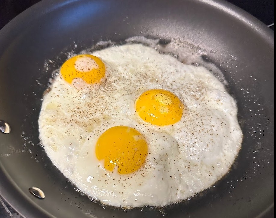 We usually make fried eggs the French way, which is called a mirror egg, but in case you want a regular fried egg here’s the best way to go: